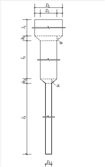 D1D2D3自上而下第一、第二、第三段樁身的直徑;