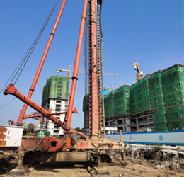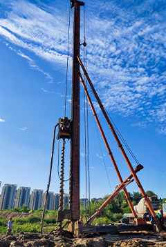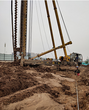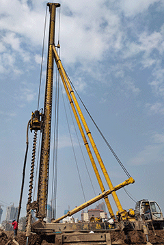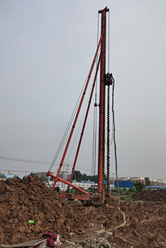2、標記位于當鉆頭底部向上距離樁頂標高位置1米時動滑輪所處位置,標記做到立柱上,即當動滑輪向下到達立柱標記處時,停止拔鉆,持續泵送混凝土,紅燈亮起時停止泵送,拔出鉆桿即可。